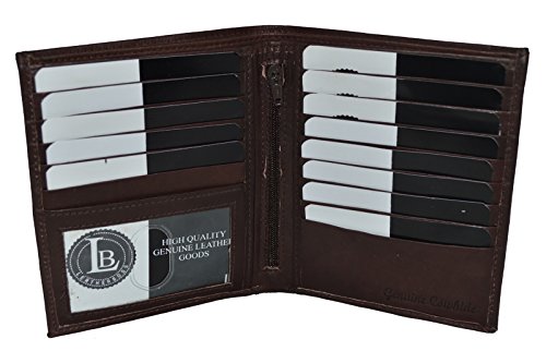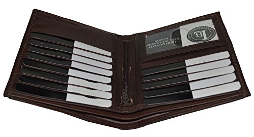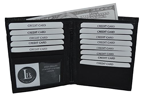 -. Binding : Apparel -. Brand : LeatherBoss -. Color : Black, Brown, Tan -. Department : mens -. Feature : Made of Genuine High Quality Leather / 13 Credit Card Slots and 1 Picture ID Window / 2 Full Size Money Pocket in the back, / 4.3/4" x 4" when closed. / Stylish and Durable Wallet -. ProductGroup : Apparel -. ProductTypeName : ACCESSORY -. Size : 4.3/4" x 4" -. Title : LeatherBoss Men's Bifold Hipster Wallet With 13 Credit Card Slots