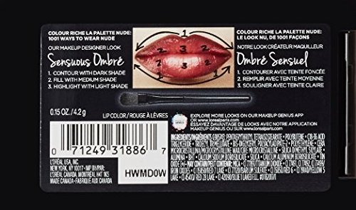 L'Oreal Paris Colour Riche La Palette Lip, Nude, (Pack of 2). 5 carefully crafted nudes. Endless color combinations •Silky formula with an ultra-precise makeup designer brush •More than your everyday nude lip look Brand : L'Oreal Paris MPN(PartNumber) : 071249318867 EAN : 0071249318867