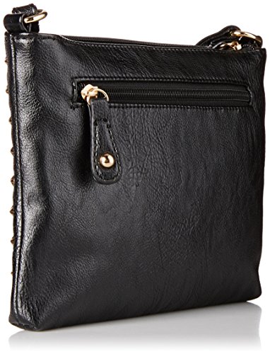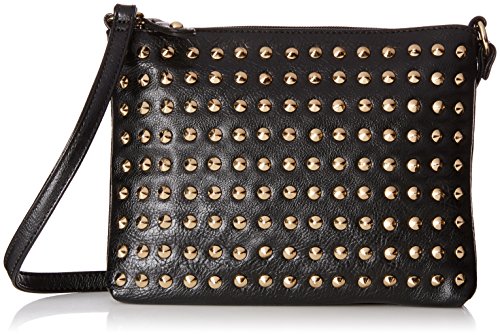 - Feature : A sweet and stylish mini purse with rows of gold-tone studs on the front for that fashionable edge / Features a lined interior with plenty of space for stashing small essentials, plus a top-open pocket on one interior wall, a zippered pouch on the other, and a zippered pocket on the exterior to help keep your belongings organized / The single leatherette strap makes it easy for you to carry this handbag on your arm as a shoulder bag or sling it across your chest as a crossbody bag / Made of manmade materials / Approximate Dimensions: Exterior - 8.5" W X 6.5" H X 1.75" D; Interior - 8.5" W X 6.5" H X 1.65" D; Shoulder Strap - 20.5" shoulder drop