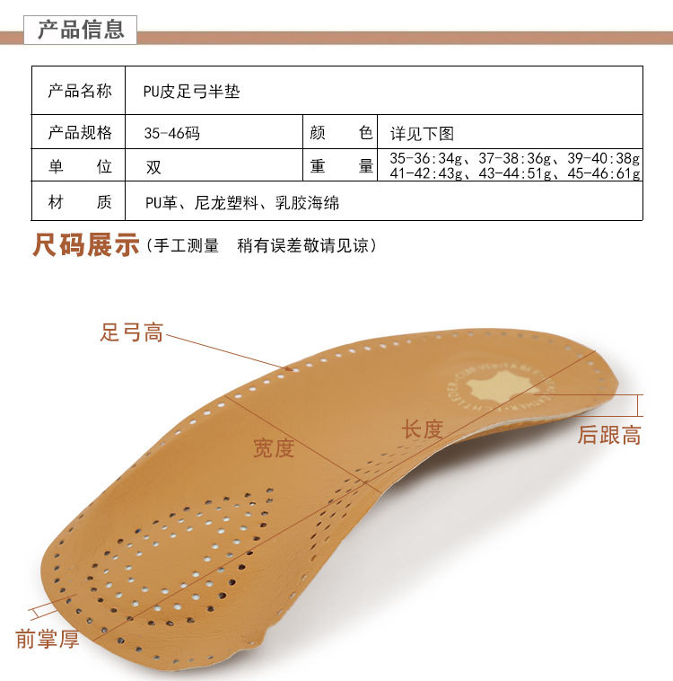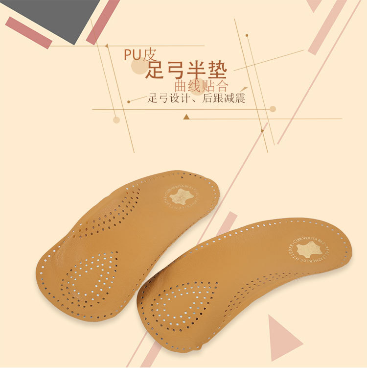 イミテーションレザーアーチハーフパッドフラットフットアーチフットインソール男性または女性整形外科3/4修正滑り止めプラス