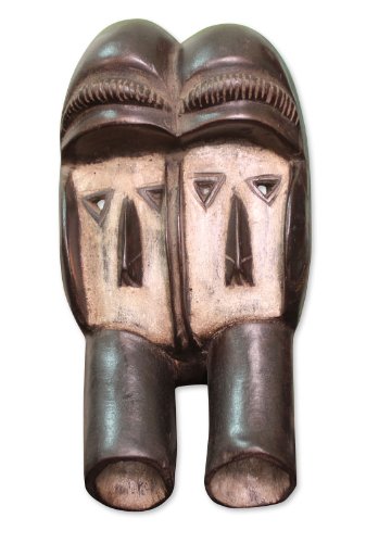 NOVICA Decorative Sese Wood Mask, Brown, 'Kran Twins'
