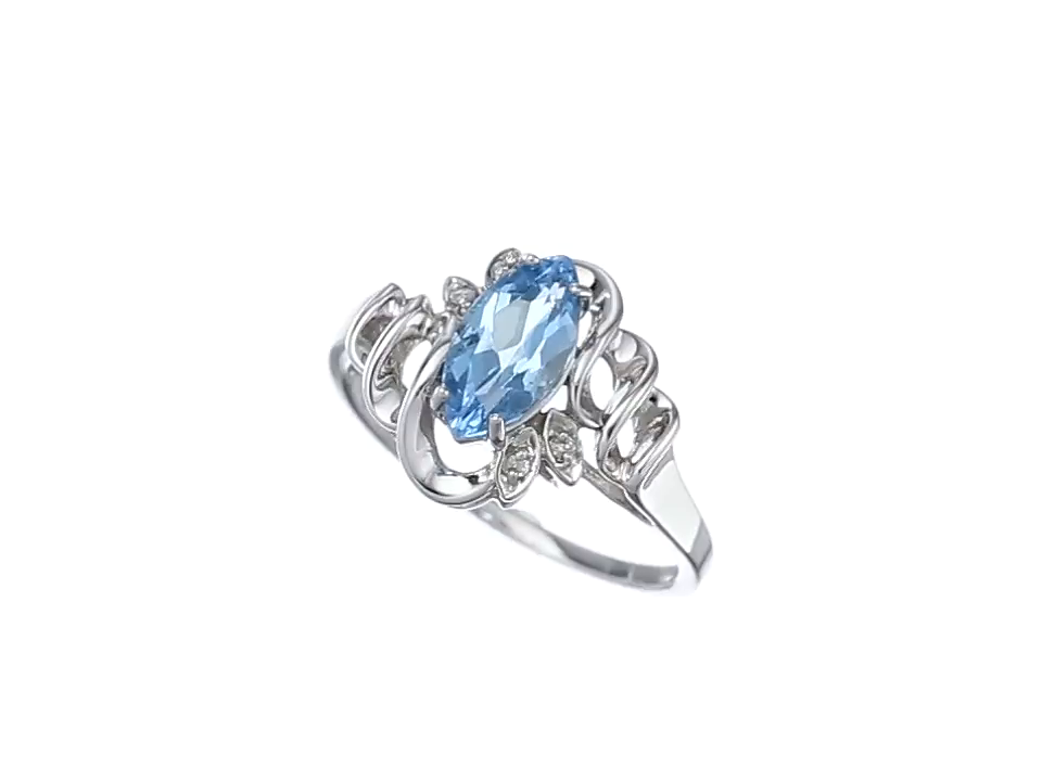 10k White Gold Marquise Gemstone and Diamond Accent Ring, Size 7
