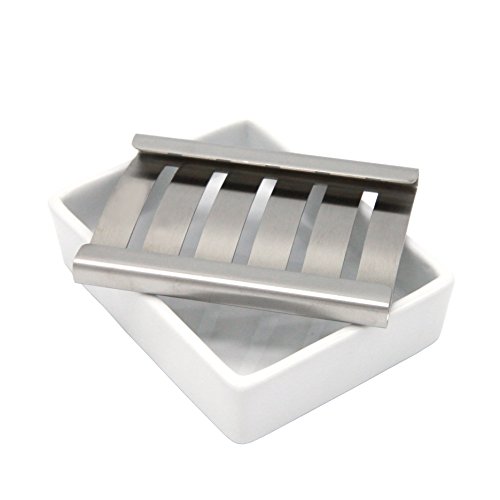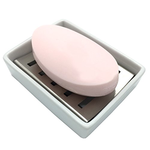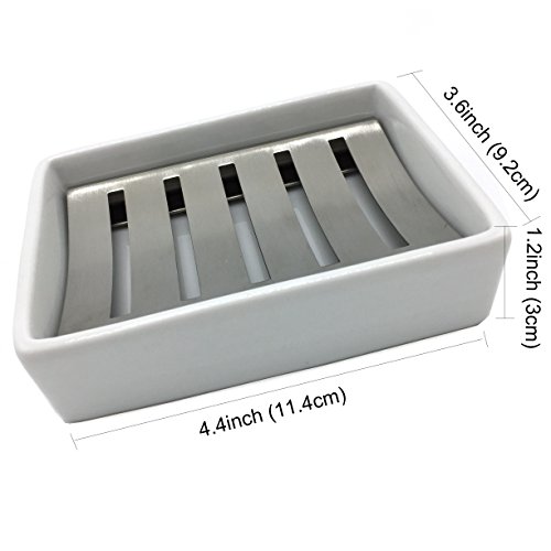 Ceramic Soap Dish Stainless Steel Soap Holder for Bathroom and Shower Double Layer Draining Soap Box by Passionier
