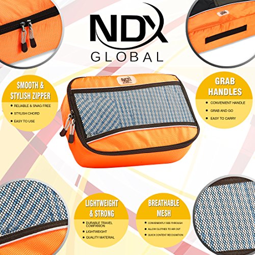 Tired of stuffing your clothes into your already overstuffed suitcase? Then these luggage cubes by NDX Global are for you! Made of high quality nylon with mesh front panels and easy two way zippers, they are both durable and lightweight. Easy to use, they fit into standard size suitcases and protect your clothes from dirt, wrinkles, and stains, as does the bonus shoe bag.Product Features: