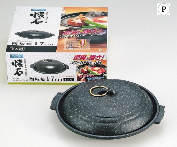 家庭で本格料亭気分が楽しめます。マーブル加工がされているので、キズや汚れがつきにくいです。 製造国:韓国 素材・材質:表面加工:ふっ素樹脂塗膜加工本体・蓋:アルミニウム合金 商品サイズ:幅215×奥行195×高さ75mm 重量:440g ※サプライヤー直送品 ご注文後3~4営業日後の出荷となります【商品名】ストロングマーブル懐石 陶板焼17cm H-5366