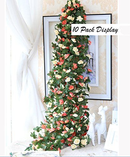 -. Feature : Material: Silk,Plastic,High Quality,Each garland 8.2 FT Long,Flowers 1.6 inches in diameter,Each garland holds about 45 leaves,45 flowers. / Lifelike artificial flower that remains just as fresh-looking and beautiful year after year / Ideal for weddings, festivals,parties, home decorations, gardens, fencing,floral tributes, sheds Swing frame, air-conditioning pipes, water pipes, door frame, exposed wires, stairs, etc. / You can hang on the wall, doors, swing, mirrors and anywhere as you like to enjoy with artificial leaves vine. / Add a touch of color and romance to your home with these beautiful Vine leaves