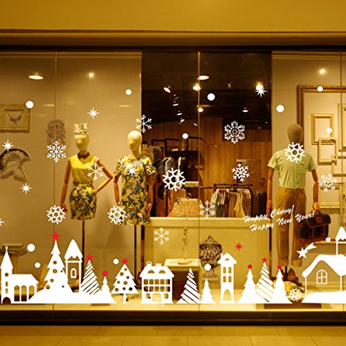 -. Title : Slowslient Merry Christmas Xmas White Snowflake Wall Decal Ornaments Removable Window Wall Sticker Mural Decal Art Home Glass Room Decor DIY