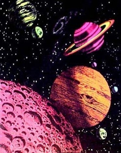 Get a little spacey with this opticz galaxy blacklight reactive cloth wall hanging. Black light (uv) reactive inks fluoresce brightly under blacklights. The silk-screened print features colorfully bright uv reactive ink on 100% cotton twill fabric with sewn edges that will not rip. This poster sized print measures approx. 23" x 28".
