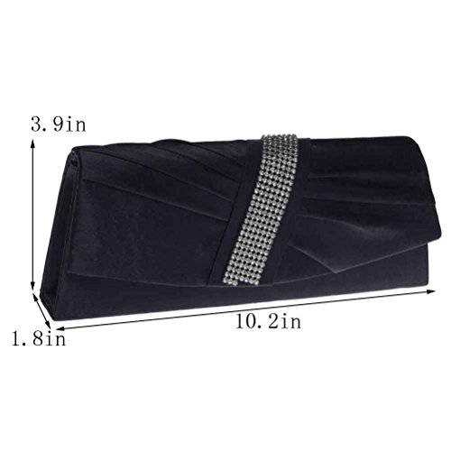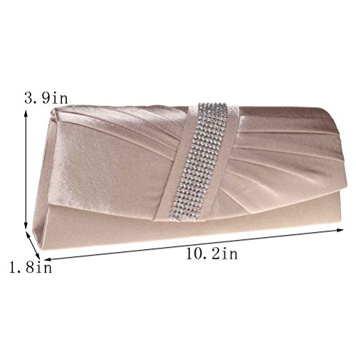 -. Feature : DESIGN - This pleated rhinestone evening clutch makes you noble and elegant. / CAPACITY - It's a super fashionable evening clutch that fit everything you need (cell phone, lipstick, a few bobby pins, ID, debit card, cash). / CARRYING OPTIONS ¨CYou can hold this evening bag in your hand or you can also use it as a shoulder bag with the chains coming with the bag. / OCCASIONS - Great for wedding, party, prom£¬etc. Just get this clutch purse to have a wonderful night. / SERVICE ¨C We love our customer, we will try our best to address all the issue they may meet in time.