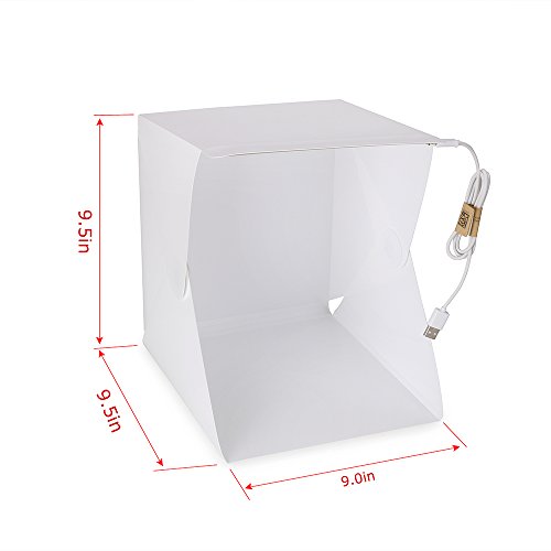 Photo Light Box Specifications: Size:9.5*9.5*9.0inch Weight: 8.8 ounces Photo Light Box Material: Studio(PP)/ background backdrop(EVA) Photography Shooting Tent Features: * The light box can provide a unified interior lighting system that provides a balanced light.The light can be evenly distributed in space and photos, without the need to modify the software. * The table top folding photo studio comes with one black one white removable fabric backgrounds, help you to take professional pictures and photos * Portable design,easy to store and carry, suits for shooting high quality picture for small products at anyhwere and anytime. Photo Light Box Package includes: 1x Photo Studio Box 1x USB Cable 1x Black Background Colth 1x White Background Colth 0 |