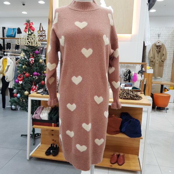 반폴라 하트원피스입니다니트로 따뜻하며 귀여운 스타일의 원피스입니다