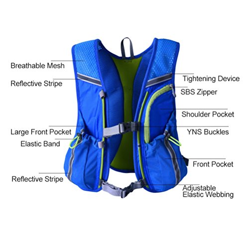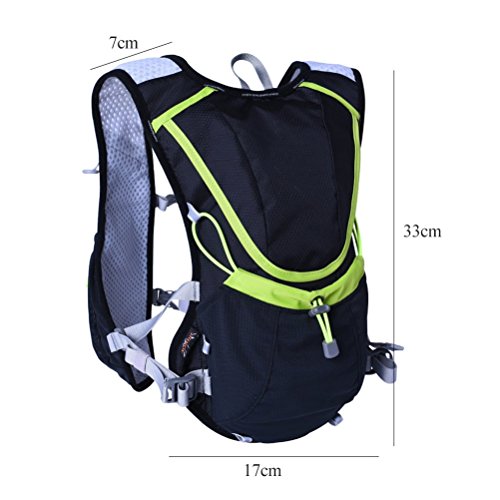 Product Description Simple and roomy hydration backpack, you can have it for running, hiking, climbing, and so on. There is a small bag on the shoulder strap for placing the phone below 7 inches. With a 300ml storage bag Weight: 260g Maximum length: 135cm