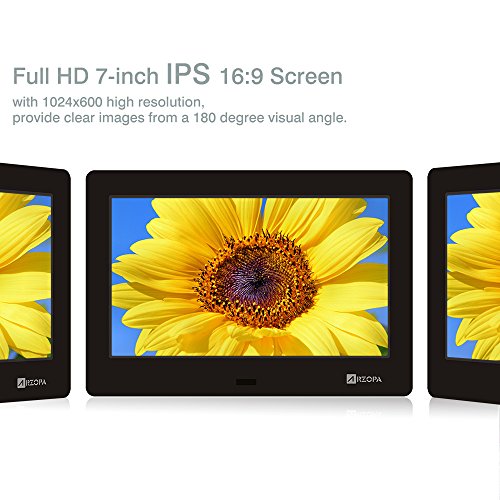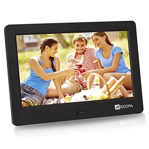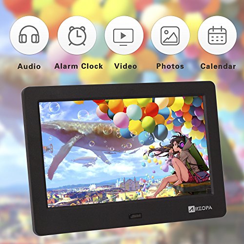 Studio : Arzopa Publisher : Arzopa Binding : Electronics Product Description Notice: if picture playback appear stripes or garbled, this is because the picture format uncompatible. Modify the picture format to play normally!! Specifications: Brand: Arzopa Model: Arzopa IPS 7inch DPF Panel: 7inch IPS Screen Aspect Ratio: 16:9 Resolution: 1024*600 Luminance: 350cdm2 Card slot: SD/SDHC/MMC/MS USB Port: Mini USB / USB Host 2.0 Head phone: 3.5mm earphone Slideshow time: 3s, 5s, 10s, 15s, 60s, 5m, 15m, 30m, 60m. Start modo select: Photo, Music, Videos, Calendar, Combo(musicphoto),Off . Power manager can set: Brightness, Contrast ,Saturation, Alarm, Power off/on. Photo format : JPG/JPEG Audio format: MP3/MP2/MP1/WMA/OGG/APE/FLAC/AC3/RA/AAC Vidio format: RM/RMVB/MKV/MOV/M4v/MPG/FLV/PMP/AVI/VOB/DAT/MP4/3GP etc. Speaker: Built- in speaker Language: Multi Language Remote control: Full function remote control Auto play: Auto slideshow Auto playback and loop for video files Item Size: 20cm*12.3cm*2cm Net Weight: 230g Package List: 1 x Digital Photo Frame 1 x Stand 1 x Power Adapter 1 x Remote Control 1 x User Manual(English)