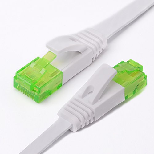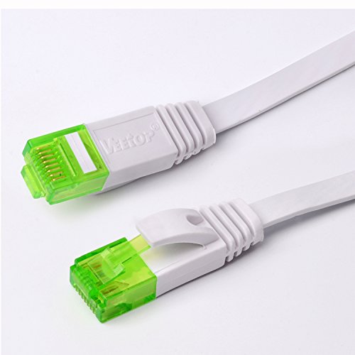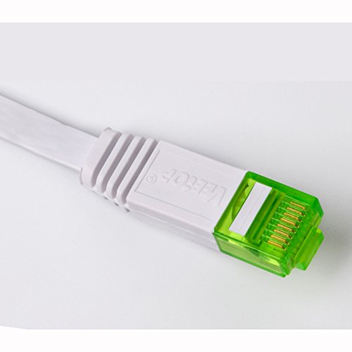(2 Years Warranty) Veetop 250MHz 1000Mbps Flat CAT 6 RJ45 Ethernet Gigabit LAN Networking Cable Broadband Cable Gold Plated Connector for Computer Router Patch Modem Switch (Flat-10m/32.8ft-White)
