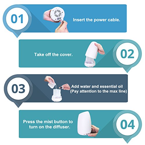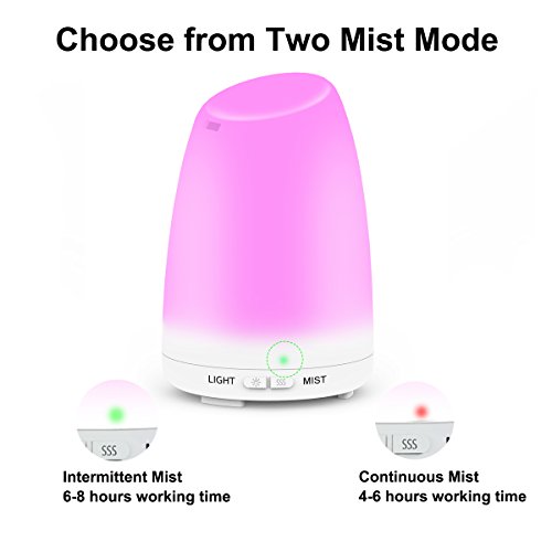 - 🌹【Mood Enhancing – 7 LED color Lights Changing】 - With the soft swirls of cool mist in the air, You can choose your favorite essential oil and experience how natural fragrance can change the mood and refresh your space. This is a aroma diffuser with 7 led color changing , you can choose the perfect light from an array of 7 calming colors to enhance your mood and use as a night light for a kid's room.