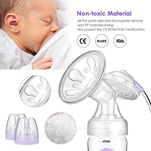 -. Feature : 【ELECTRIC DOUBLE BREAST PUMP】: 9 suction power settings adjustable,1- 4 massage mode,5-9 mimic baby sucking breast,sucking two side at once,One button to switch ,simple operation. / 【ANTI-BACKFLOW DESIGN】:Protect the mainframe,extend the service life. / 【BPA Free】: All the machine parts including the milk bottle and pacifiers are all PP or silica gel materials and without BPA,which can be boiled and disinfected at high temperature. / 【LOW NOISE DESIGN】: Without disturb the sleeping baby. / 【MULTIPLE WAYS OF CHARGING】 - AC adapter;USB connection; 4PS 1.5V alkaline batteries (not included)