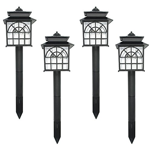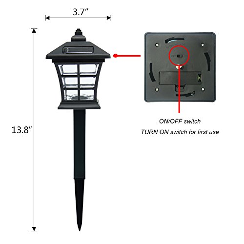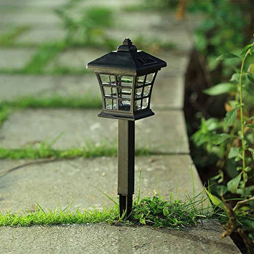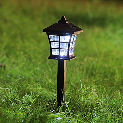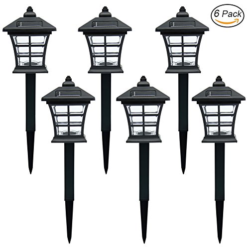 Made of plastic with black finish, classic small house design with plastic lens provides a nice light effect on the ground, better visual enjoyment. 6 pack, 2 lumens per lights. Measures: 3.7×3.7×13.8 inches.