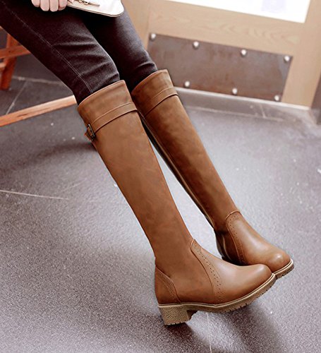 Binding : Apparel Product Description The fall is coming. And do you need to change the style of your shoes? If you have this idea, why not choose the ideal shoes in our shop? This pair of boots is for women, girls, young ladies and office workers. You will look sexy and chic when wearing them. The heels measure 1.4 inches. You will look slimmer and slender in their low heels. So you will not feel too tired when walking with them. The pair of shoes features knee high and inside zipper. The design of round toe and buckle will make you look cool. The sole is made of good rubber. You will feel comfortable in their soft bottom. They are of high quality and durable. Come on and take them away! 0