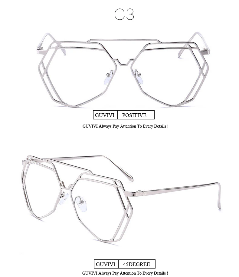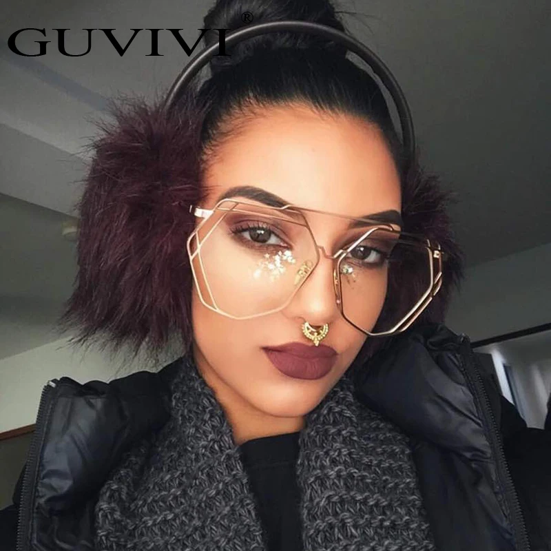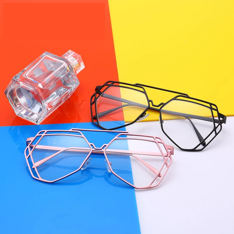 large Metal optical frame clear glasses:Polygon Transparent Glasses Frame Women Men