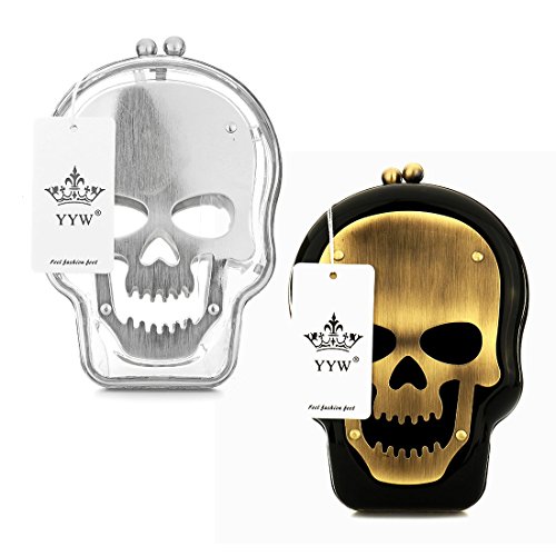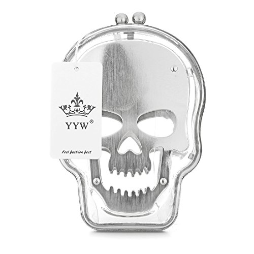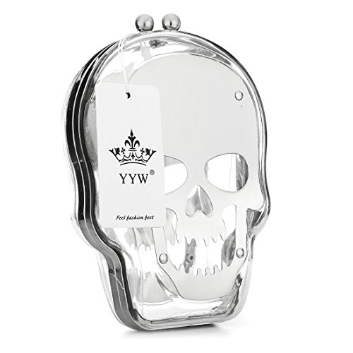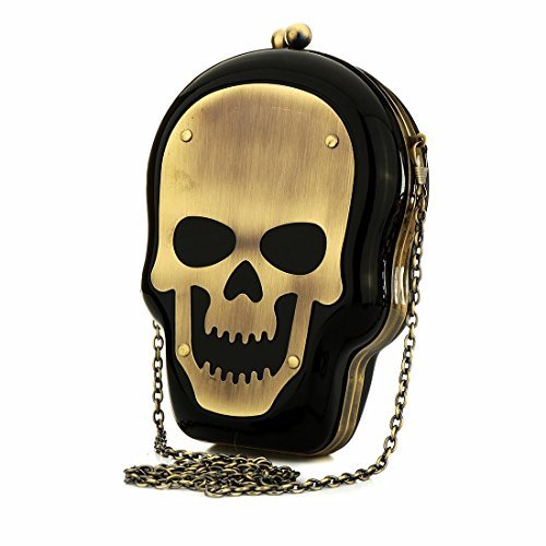 This hard plastic skull acrylic clutch bag includes a detachable long chain strap, a storage bag, and secures with a kiss lock closure. With just enough room to carry the essentials, this clutch purse is a must have for your accessory collection, and is great as a gift for skull lovers!