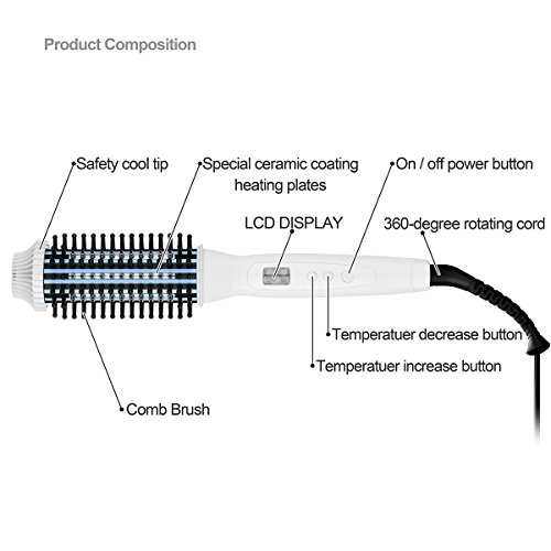 YooZoo Hot Styling Curly Hair Comb Brush,Professional Ceramic Anti-scald Curling Iron brushes Electric Round Heat Curler Hair Curling Wand
