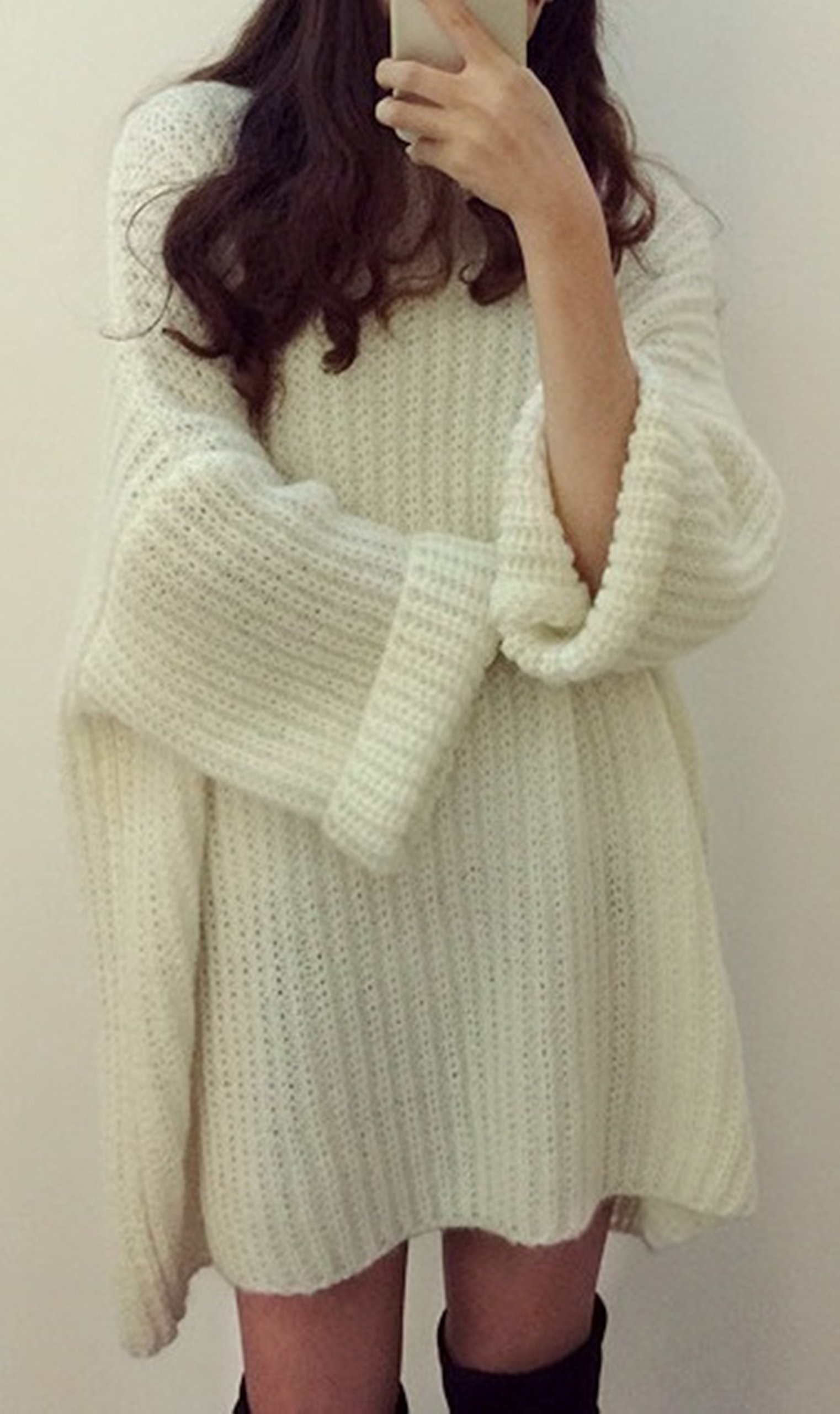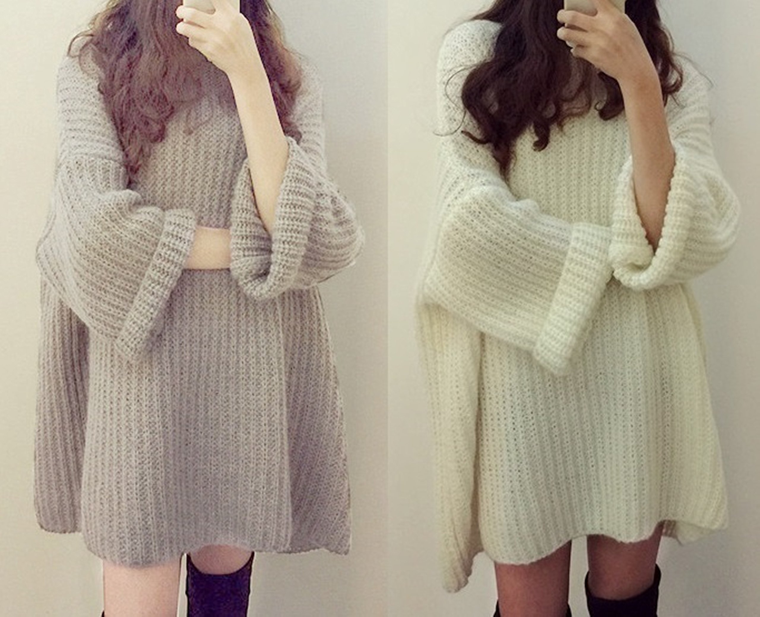 It is an introduction of the knit that the combination of the bell sleeve is characteristic for a relaxed making