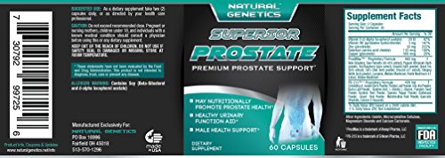 - Feature : NO MORE FREQUENT BATHROOM TRIPS: Natural Genetics Perfect Prostate is a made up of a powerful blend of natural herbs and ingredients that will aid your prostate to help eliminate multiple bathroom trips! Simply take your daily dose and sleep through the night. / NO MORE 'PERFORMANCE' ISSUES: As we get older, the health or our prostate affects, well, our performance in the bedroom too. Perfect Prostate supplementation may help keep you at peak performance, at all times! / NATURAL SUPPORT, NO HARMFUL INGREDIANTS: Perfect natural support is packed full of clinical herb doses that are proven to heal and support your prostate. Each bottle includes 30-plus ingredients including: Lycopene, Cranberry, Saw palmetto, Pygeum, Stinging nettles, Quercetin and more. / PEACE OF MIND: By taking action and being proactive with your supplementation, you can rest easy knowing that your prostate is getting the very best proven nutrients for long term function and support... day in and day out! / FEEL THE DIFFERENCE OR YOUR MONEY BACK: If you don't feel any different when trying our prostate blend, just let us know and we'll issue a full refund, no questions asked. You have absolutely nothing to lose by trying Perfect Prostate today.