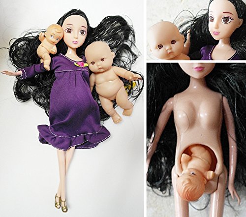 -. Feature : Real eyes & real pregnant body black hair mom doll / * Includings : big mom + big baby + little baby / * Mom & big baby have real brown eyes! / * good education gift doll / * Amazon will send mom's dress & baby face randomly !