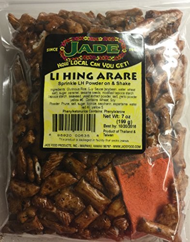 -. Feature : Jade Hawaii, Li Hing Arare / Great snack! / 7 oz. resealable bag / From Jade Hawaii Snacks since 1962 / Selling delicious snacks in Hawaii since 1962!