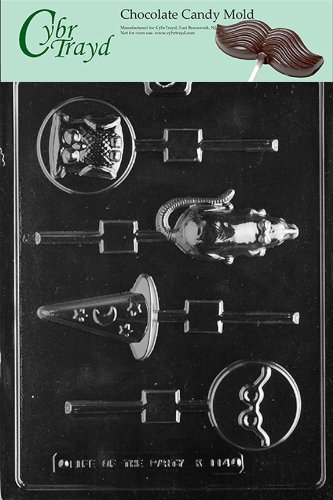 Cybrtrayd Life of the Party K114 Wizard Rat, Owl, Glasses, Sorceror's Witch Hat Lolly Chocolate Candy Mold in Sealed Protective Poly Bag Imprinted with Copyrighted Cybrtrayd Molding Instructions