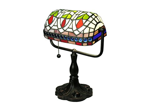 Warehouse of Tiffany KS20+MB50 Tiffany-style Art Glass Desk Lamp, Blue/Green