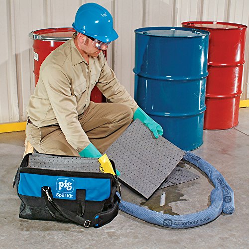 -. Binding : Misc. -. Brand : New Pig Corporation -. Feature : Vinyl-coated canvas tote bag withstands tough environments; pockets store additional tools and supplies / Pig blue socks stop spreading spills; Pig mat and pillows absorb quickly; Pig repair putty plugs or patches leaks and cracks / Includes disposable coveralls, gloves and goggles to guard against splashes / Temporary disposal bags help make cleanup easier / Bag features a wide-Opening mouth and self-standing design -. Label : New Pig Corporation -. Manufacturer : New Pig Corporation -. Model : KIT283 -. MPN : KIT283 -. NumberOfItems : 1 -. PackageQuantity : 1 -. PartNumber : KIT283 -. ProductGroup : BISS -. ProductTypeName : LAB_SUPPLY -. Publisher : New Pig Corporation -. Studio : New Pig Corporation -. Title : New Pig KIT283 28 Piece Spill Kit in Tote Bag, 6 Gallon Absorbency
