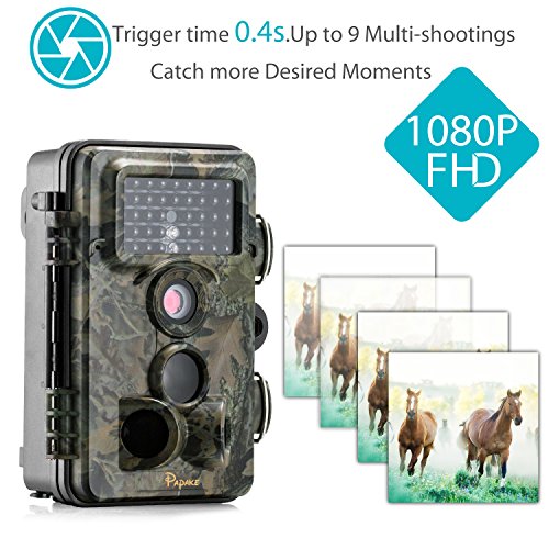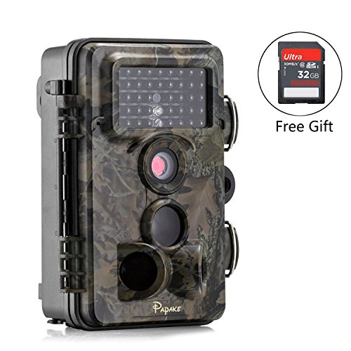 Trail Camera, Papake 1080P HD Wildlife Camera 12 MP Surveillance Camera with 3 Zone Infrared Sensor, IP66 Waterproof, 120°Wide Angle Night Vision (32GB SD Card Included)