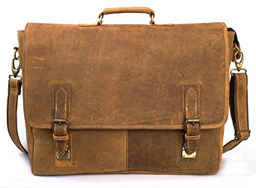KK's 16" Inch leather briefcase bag messenger satchel shoulder laptop bag for men and women