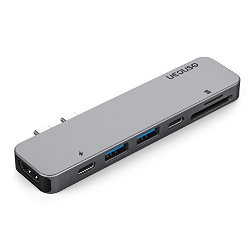USB C Hub UCOUSO Aluminum USB C Adapter Pass-Through Charging Type-c Hub with 40Gbs Thunderbolt 3,1 HDMI 4K@30HZ Port,SD/TF Card Reader and 2 USB 3.0 for 2016/2017 MacBook Pro 13” and 15” (Space Grey)