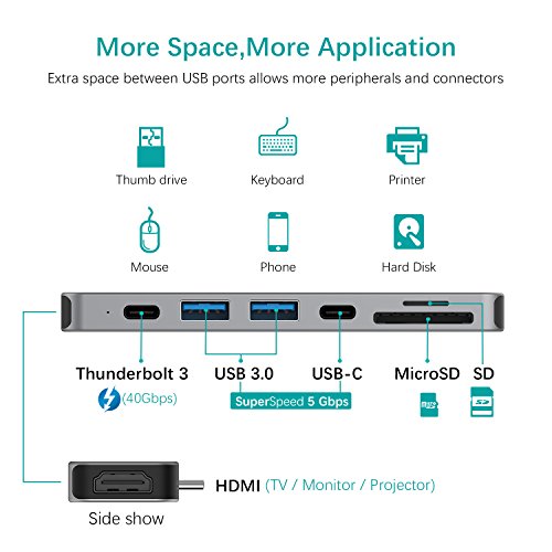 [High Speed &Multiple ports] Features two USB Type-C ports,one HDMI port,a SD and Micro SD card slot, two usb 3.0 port.