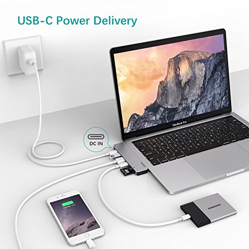 [Unique design] Specially designed for New 13" 15" MacBook Pro 2016,brushed aluminum design compliments Apple accessories,the compact and easy-to-use design makes it simple to take the Type-C USB Hub with you anywhere.