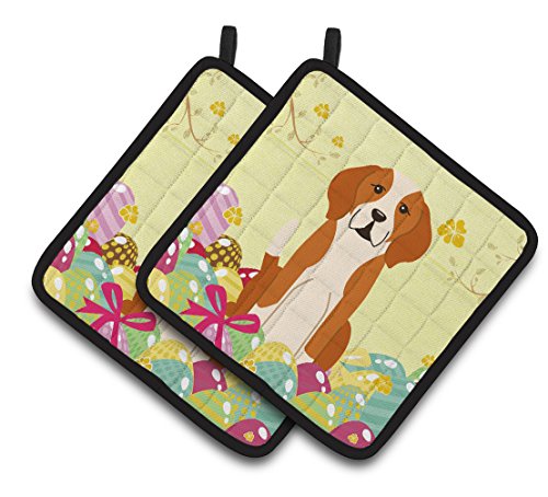 Caroline's Treasures Easter Eggs English Foxhound Pair of Pot Holders, 7.5HX7.5W, Multicolor