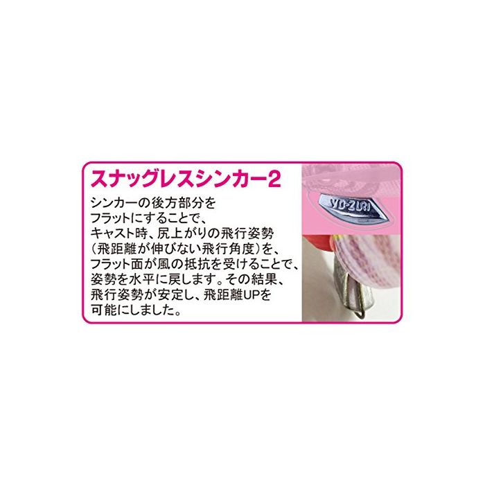 【《스낫구레스반파》2 Patent】:싱커의 후방 부분을 플랫으로 하고, 캐스트시의 비행 자세(뒤로갈수록 좋아지는 일이 된 비거리가 펴지지 않는 비행 각도)를 개선.플랫면이 바람의 저항을 받는 것에,비행 자세가 수평으로 안정 하고, 비거리UP를 가능하게 했습니다.