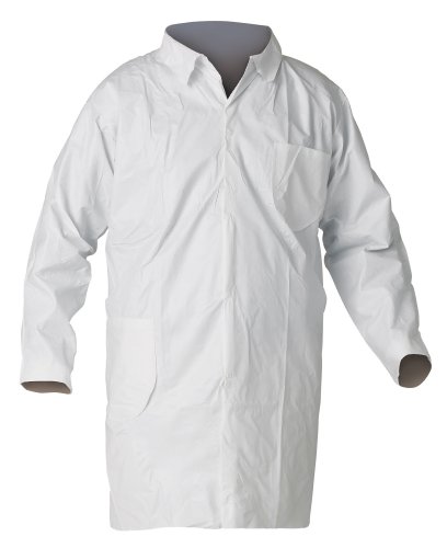 Kimberly-Clark KleenGuard A40 Microporous Film Laminate Liquid and Particle Protection Lab Coat with Chest and Hip Pocket, Large, White (Pack of