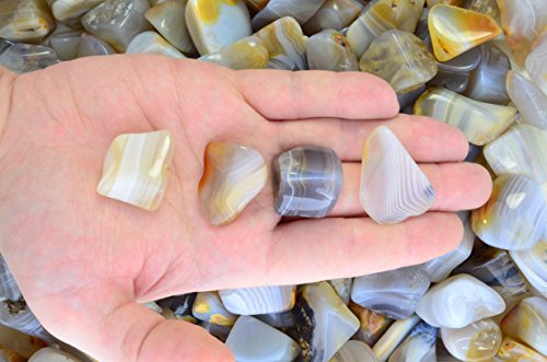 Fantasia Materials: 1 lb Tumbled Banded Agate Stones from Madagascar - Small - 0.75" to 1.25" Avg. - Premium Polished Rocks for Art, Crafts, Decoration, Landscaping, Fountains, Reiki and More!