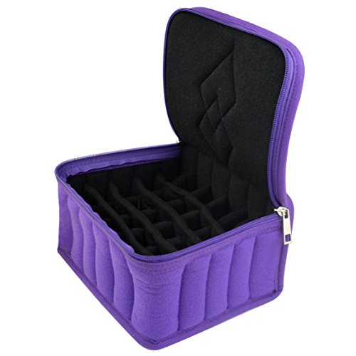-. Feature : Material: Velvet ; Color: Purple / Can hold 30 bottles, 5ml,10ml,15ml (Bottles are not included) / Sturdy Double Zipper, can hold the essential oil very sturdy / The sturdy and soft fabric can protect essential oil bottles. Suitable for home use or travel / The division design, can prevent essential oil bottles from collision with each other