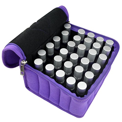 -. Title : Jmkcoz 30 Bottles Essential Oil Carrying Case Shockproof Portable Essential Oils Travel Bag Suitable for 5ml,10ml,15ml Bottles Purple