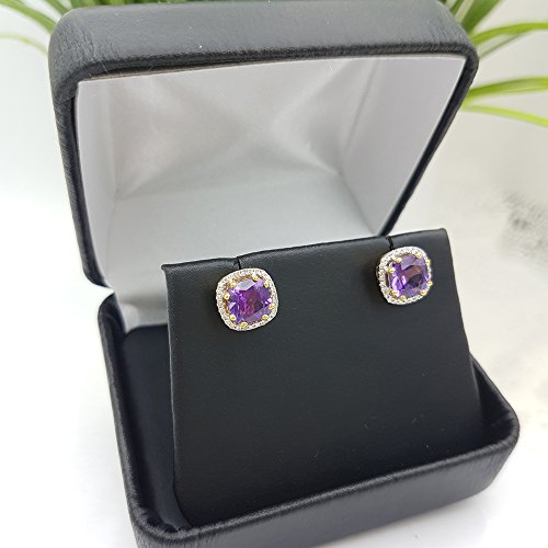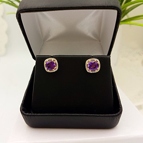These lovely stud earring feature amethyst & white diamond in prong-setting. All stones are sparkling and 100% natural. All our products with FREE gift box and 100% Satisfaction guarantee. SKU # DR5278-3970-14KY