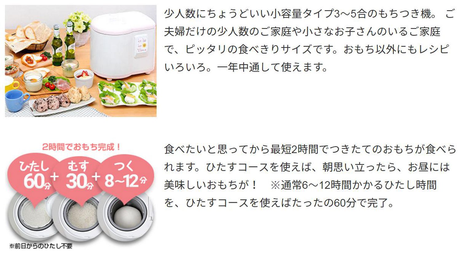 ● Speed with Hitoshi function, can eat freshly squeezed rice in about 2 hours