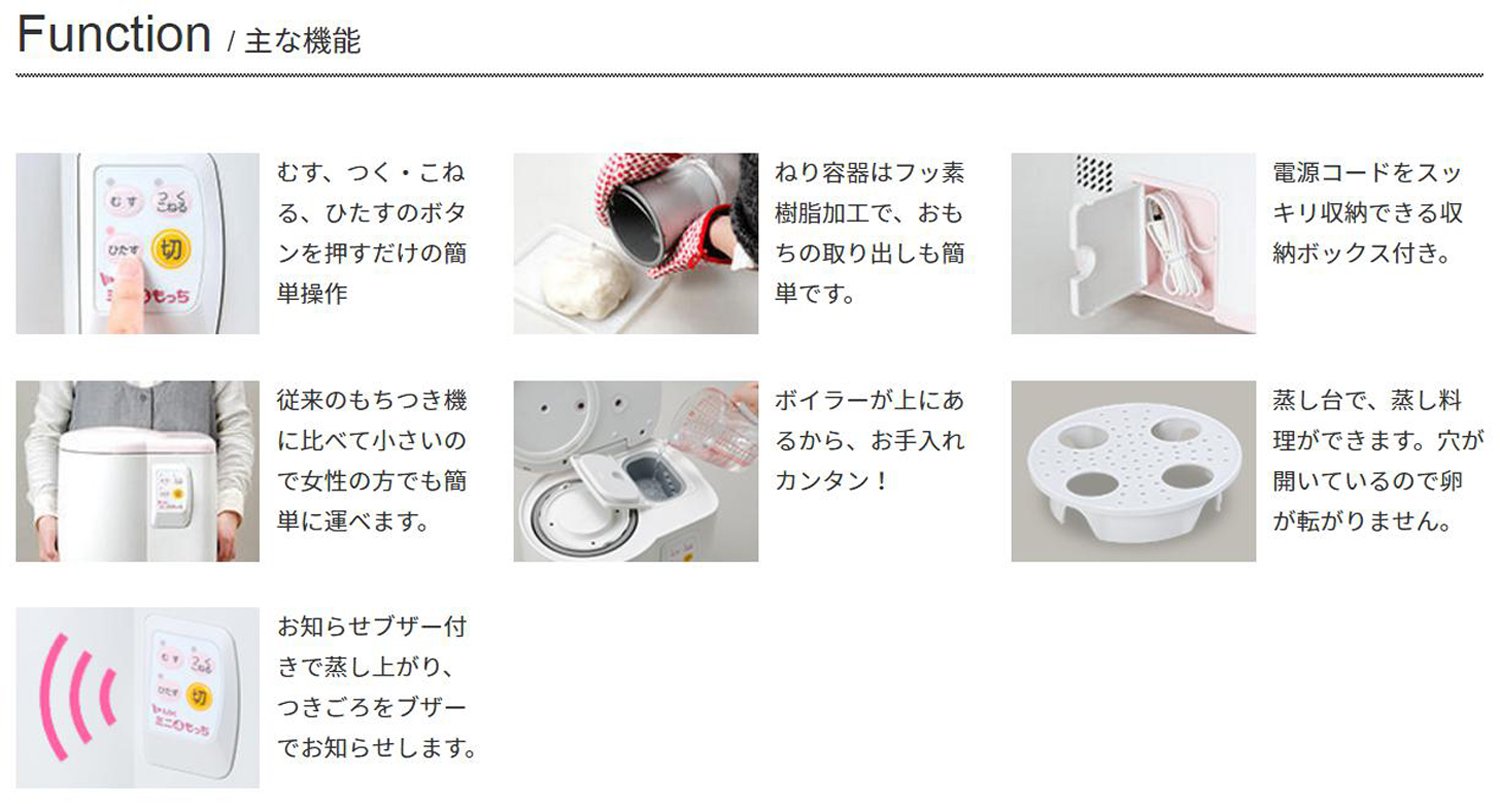 ● Full-flavored rice cake, steamed dishes, dough making, multi-cooker which can be used every day