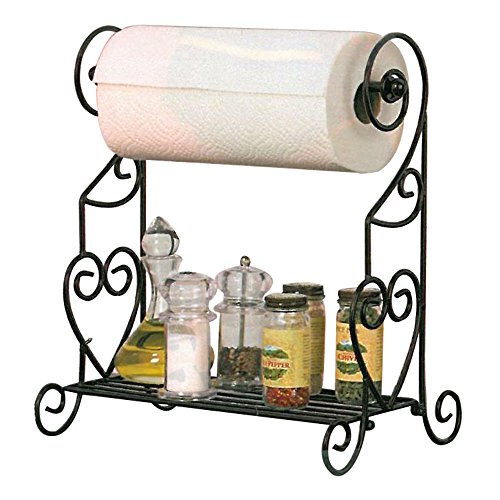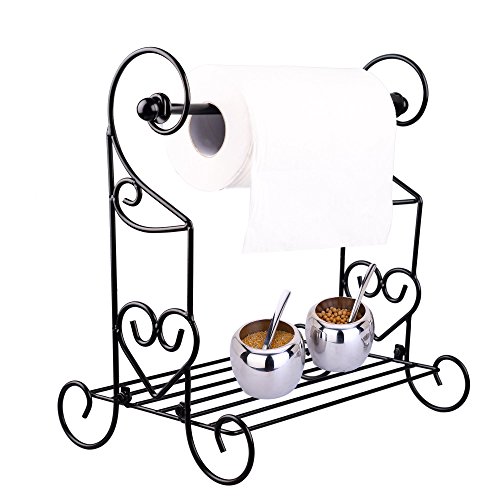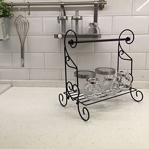 VANRA Spice Rack Kitchen Spice Stand Jars Storage Organizer with Tissue Dispenser Rack / Bathroom Paper Towel Holder & Towel Bar (Black)
