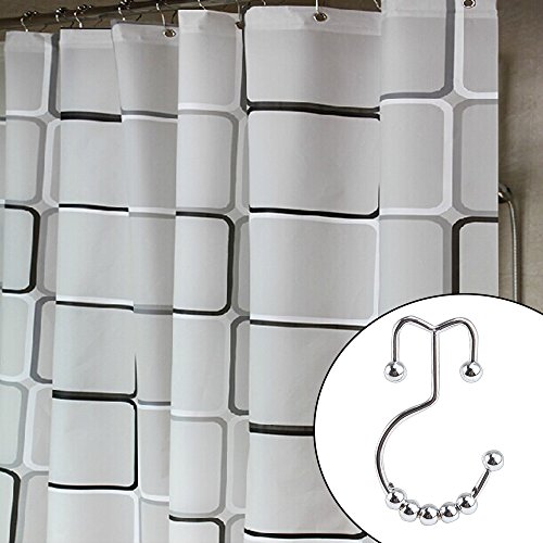 - Feature : Heavy duty-made of high grade stainless steel / Hangs both shower curtain and liner / Glides easily and rust resistant / Fits standard size shower rods / Corrosion-Free, Friction-Free and Glides Smoothly on Curtain Rods
