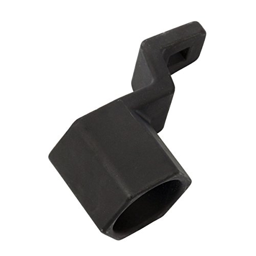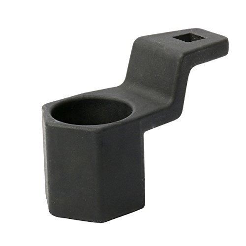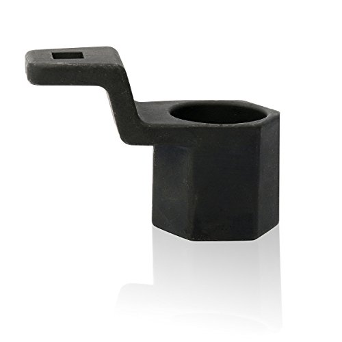 The tools design features a hexagonal shape with a hole in the center of the tool that allows the use of a socket and extension to help loosen or tighten the pulley bolt.