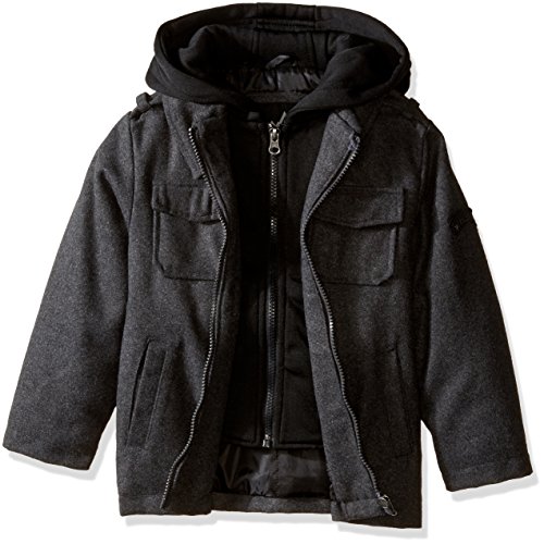 iXtreme Little Boys' Toddler Wool Jacket With Fleece Vestee, Charcoal, 2T